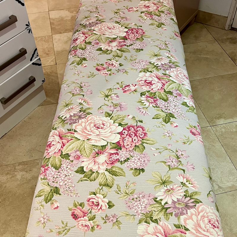 Please note that this is NOT FOR SITTING ON. Top is soft-ish. It was made for the end of the bed for decoration purposes, holding pillows, clothes. Can be used as coffee table. Lampshade suits floor lamp or table lamp. Length 163cm Height 49cm Depth 55cm