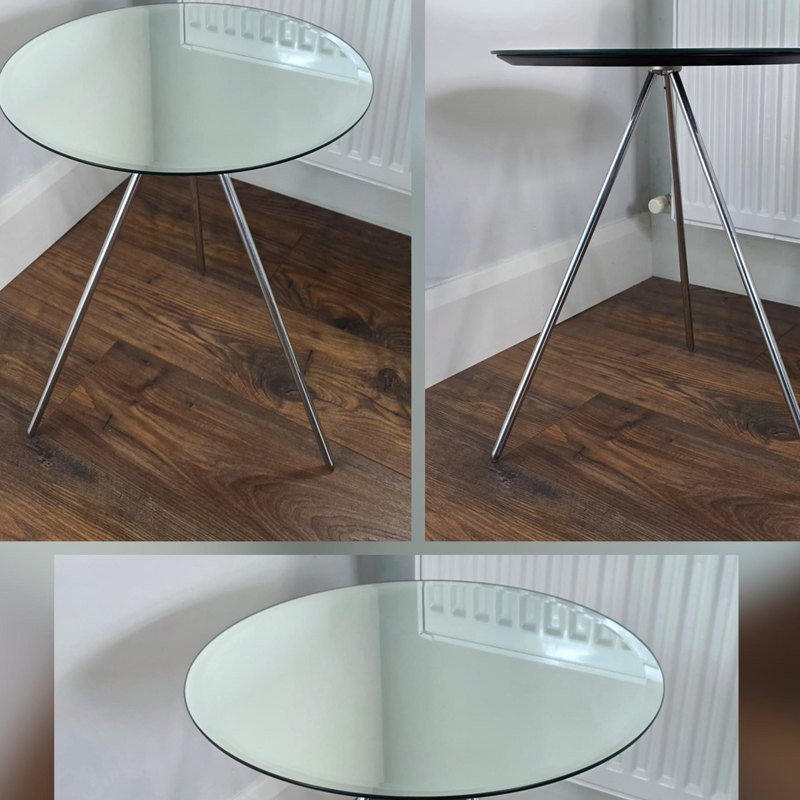 Iconic habitat sparkle side table Mirror top, silver legs. Height 50cm Diameter 42cm Mint condition. €50