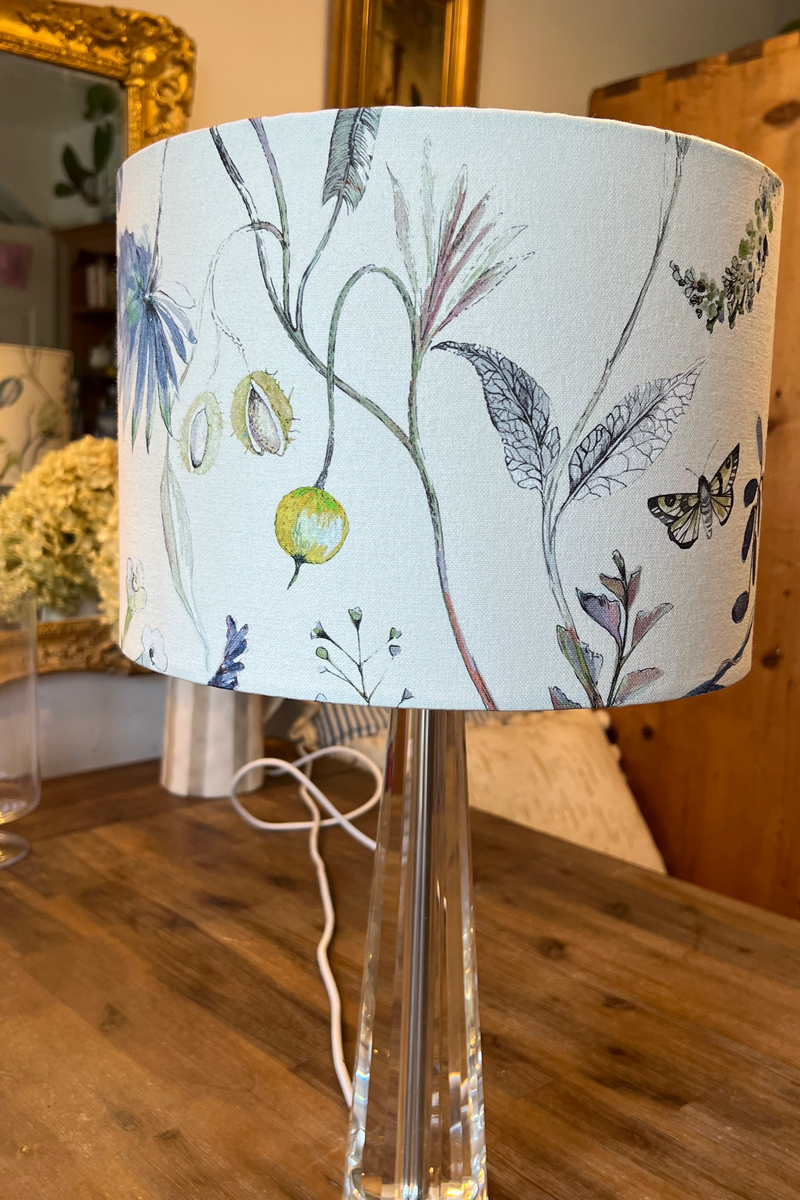 €200 for the two. Good as new. Heavy glass bases. It’s a really pretty base. Height with shade 52cm Diameter of shade 30cm. Medium lamps and shades